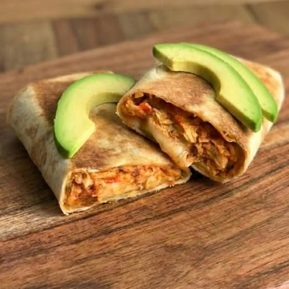 Burrito de arrachera (225 gramos en crudo) , frijoles, queso manchego y aguacate.
