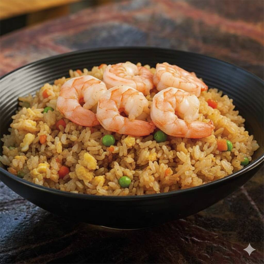 Arroz cubierto con camarón, wasabi y cinta de alga nori adicionado con salsa de soya con chile.