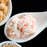 Rollo empanizado con coco rallado, relleno de camarón, pepino y queso crema.