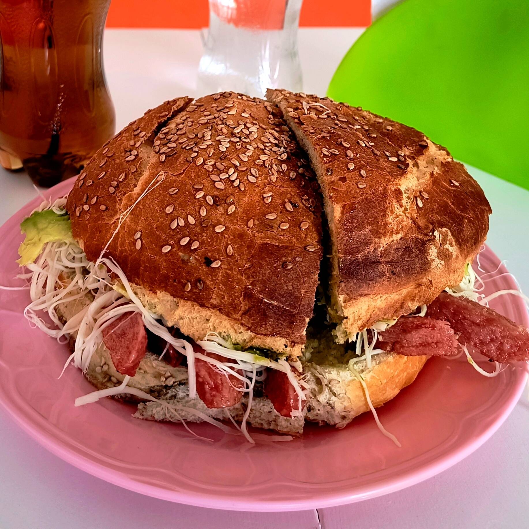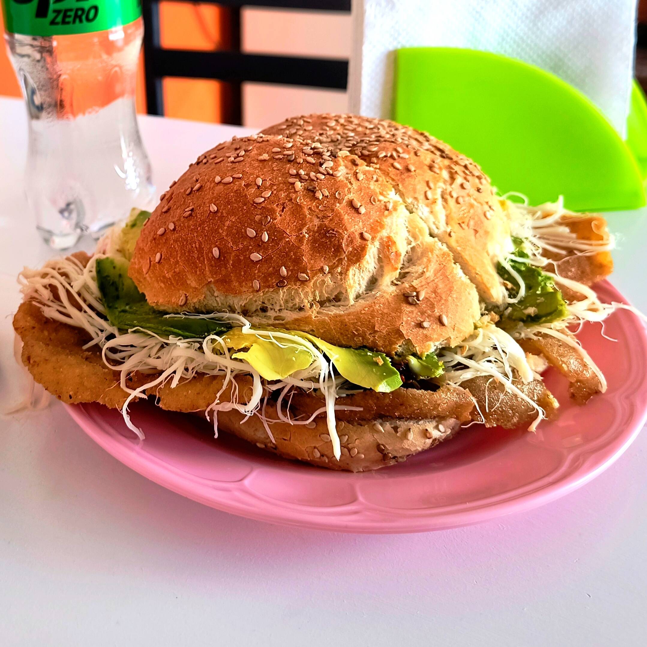 Tradicional cemita poblana con milanesa de res o cerdo crujiente, servida en pan con ajonjolí, quesillo, aguacate y pápalo.