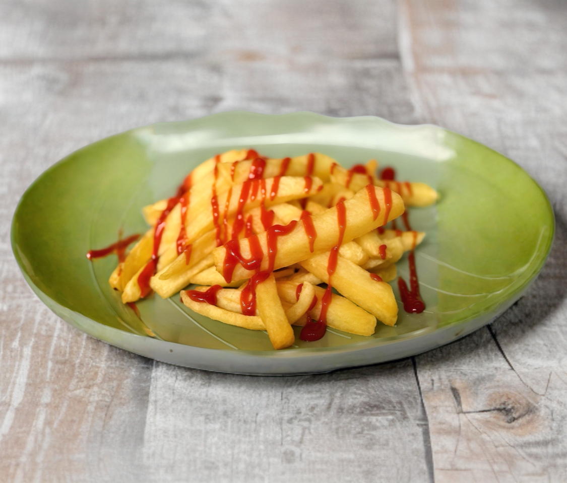 Papas fritas con la tradicional receta holandesa, que las hace crujientes y suaves por dentro, te harás adicto a ellas. Acompañadas de mayonesa y cátsup. 200 gr