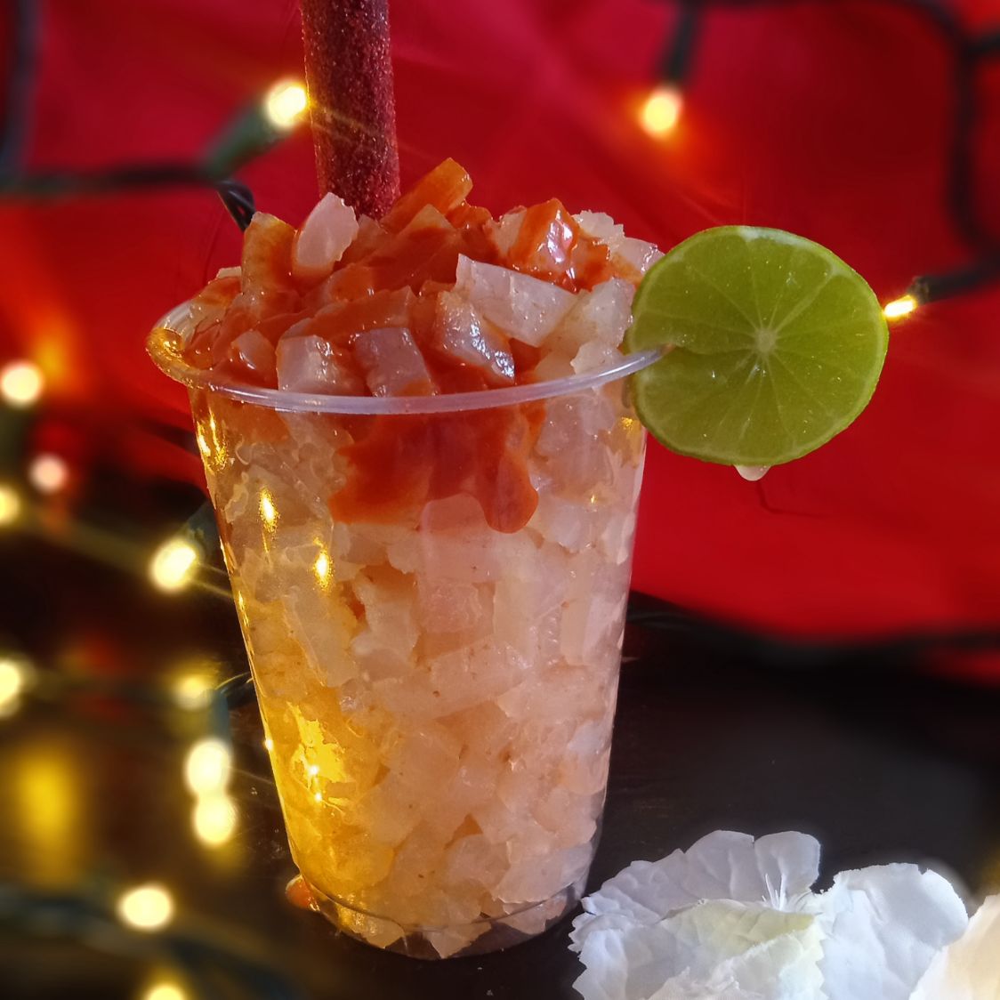 Relleno de cacahuate enchilado, Bañado en Chamoy y Tajín, Valentina y limón