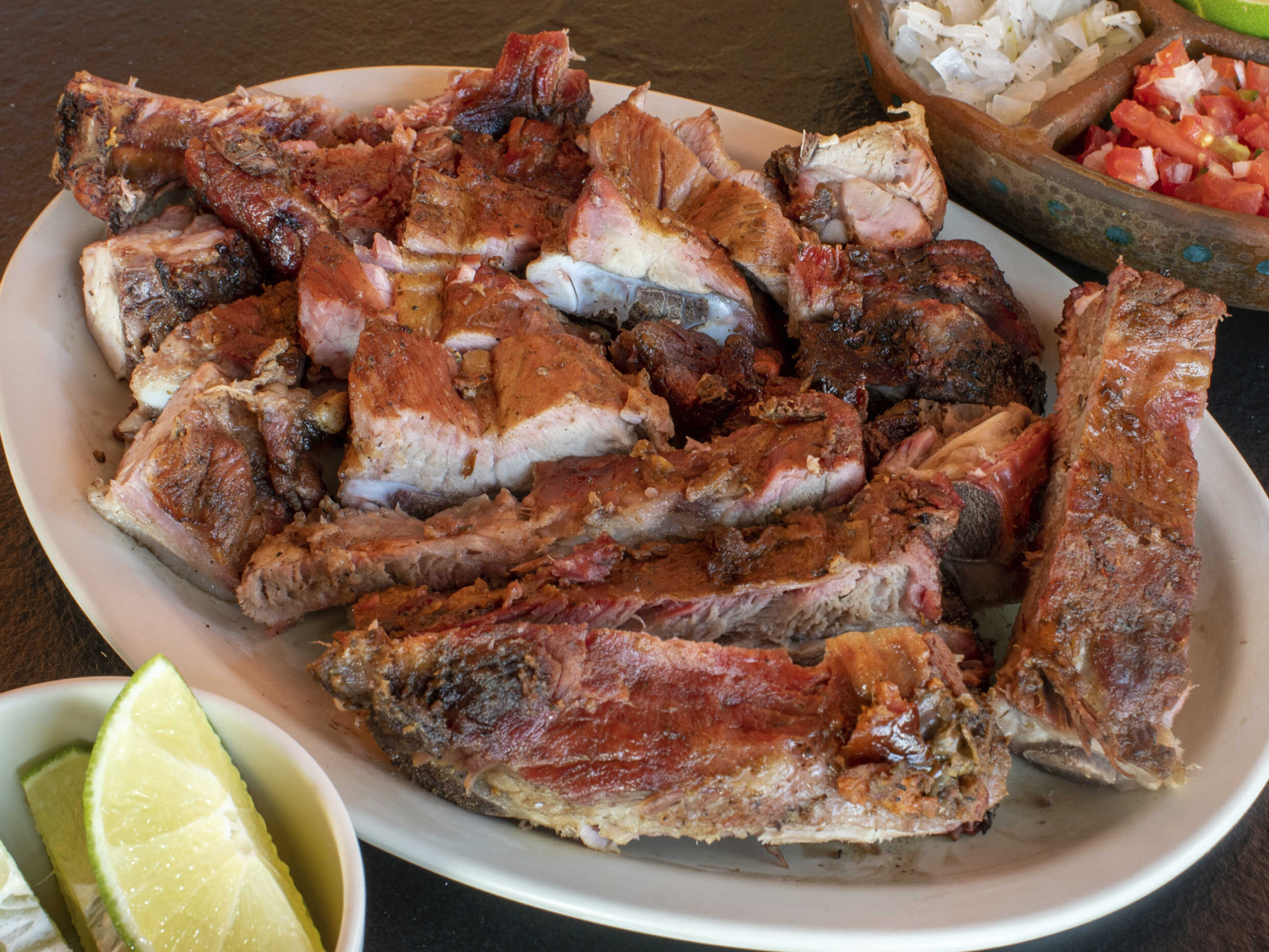 1/4 DE COSTILLA, ESPAGUETTI O FRIJOLES, 1 REFRESCO (355ML), TORTILLAS Y SALSAS.