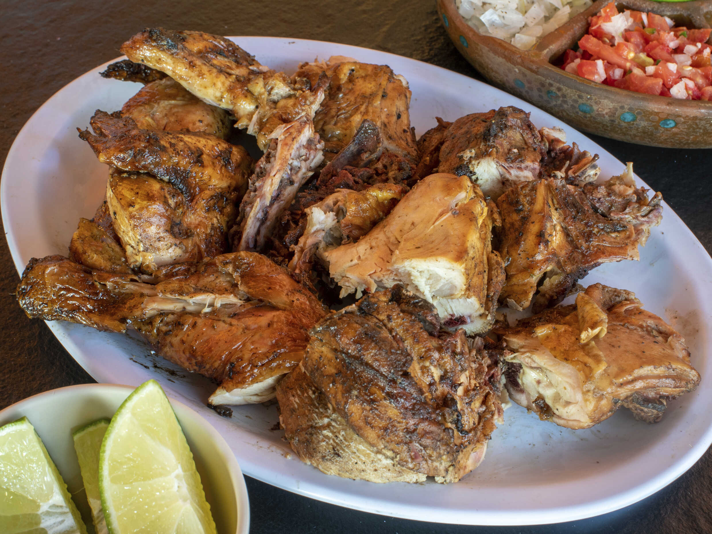 1/2 POLLO, 1/2 ORDEN DE ESPAGUETTI, 2 REFRESCOS, TORTILAS Y SALSAS.