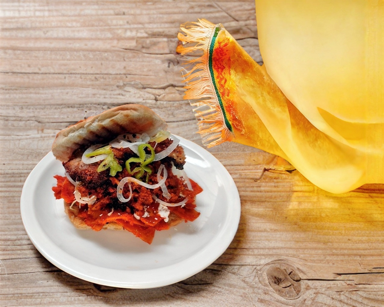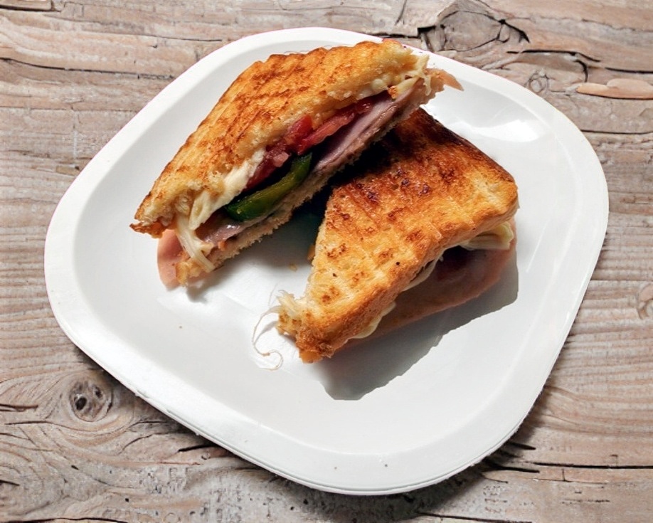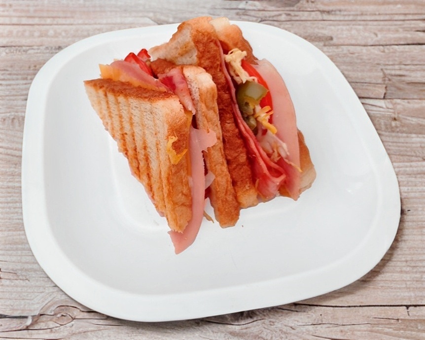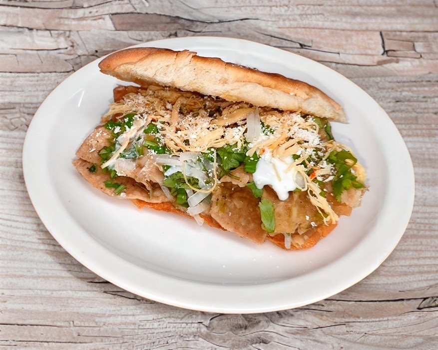 Jamon o Pollo a elegir, Frijoles refritos, Mayonesa, Quesillo, Queso Amarillo, Cebolla, Jitomates, Rajas