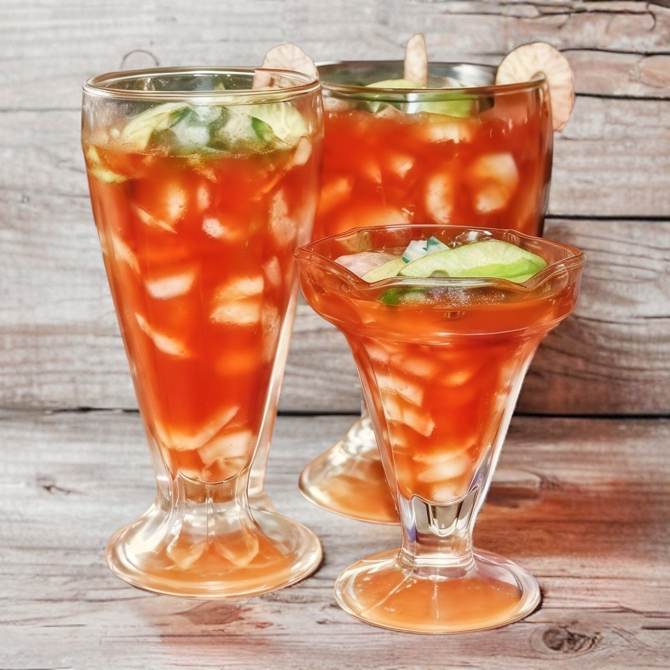 Chile morron, piña, cebolla, queso manchego, pulpo, calamar, caracol, camaron y ostion.