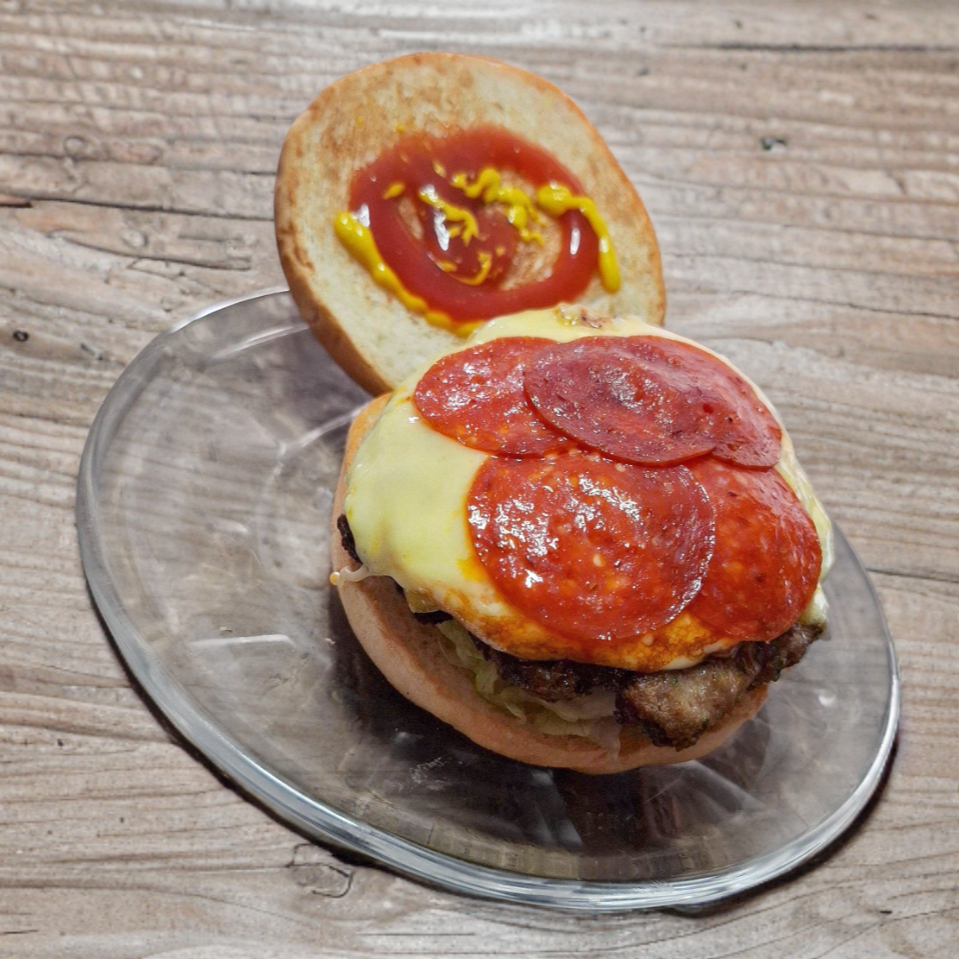 Deliciosa carne de res (100gr) con lechuga, jitomte, cebolla, queso amarillo, cubierta con delicioso quesillo, queso mozarrela y peperoni, con catsup. mayonesa, mostaza y picante a elegir.