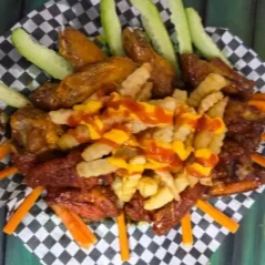 Disfruta de una jugosa porción de alitas de pollo 8 pz bañadas de una deliciosa salsa(a elegir) y aderezo.