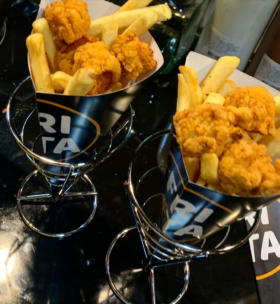 Papas fritas con boneless y aderezo a elegir (200gr de papas y 200 de boneless en crudo)
