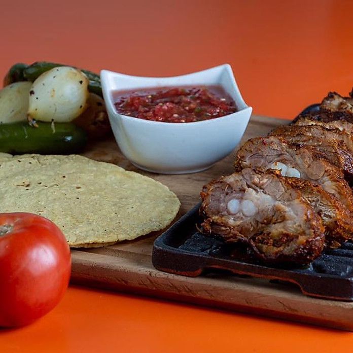 Incluye salsa roja, tortillas, cebolla, chiles.