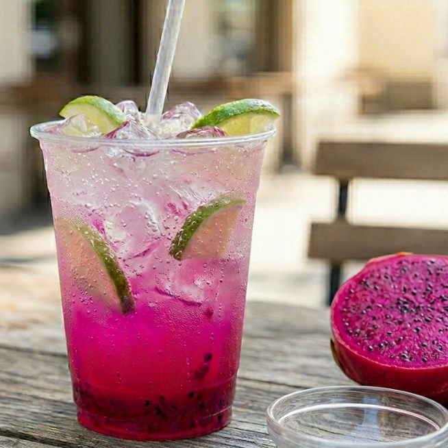 Limonada mineral con jarabe de dragon frut