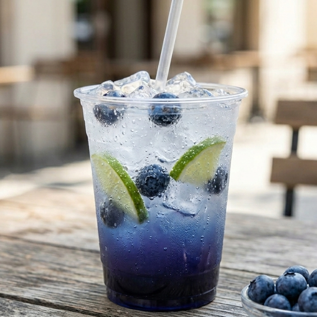 Limonada mineral con jarabe de moras azules