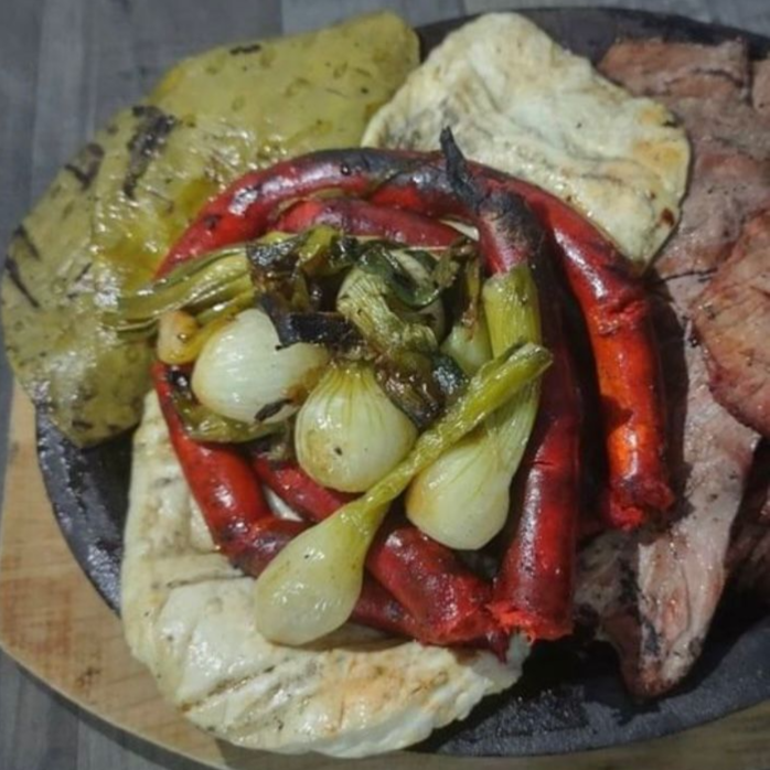 SOPA/ ENSALADA CHICA*2 + CORTE 300 GRS*2 + NOPALES Y CEBOLLAS*1 + BOTELLAVINO TINTO (750 ML)*1 + POSTRE PARA DOS*1