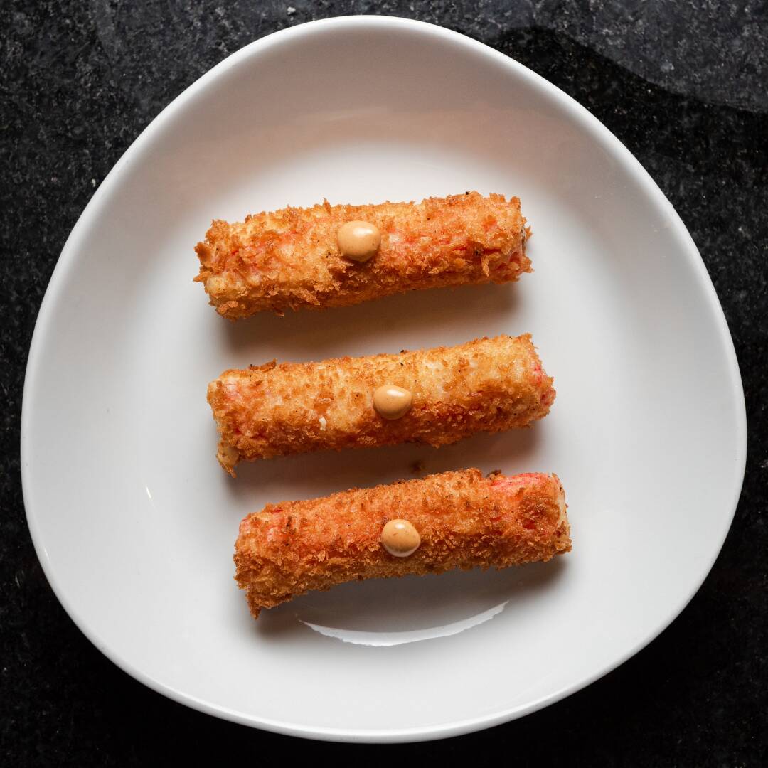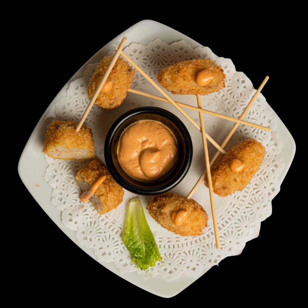 Kushiages de cangrejo. acompañados con aderezo de chipotle. (3 pzas.)