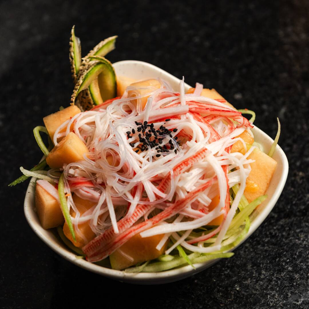 Pepino curtido, melón, kanikama y ajonjolí espolvoreado.