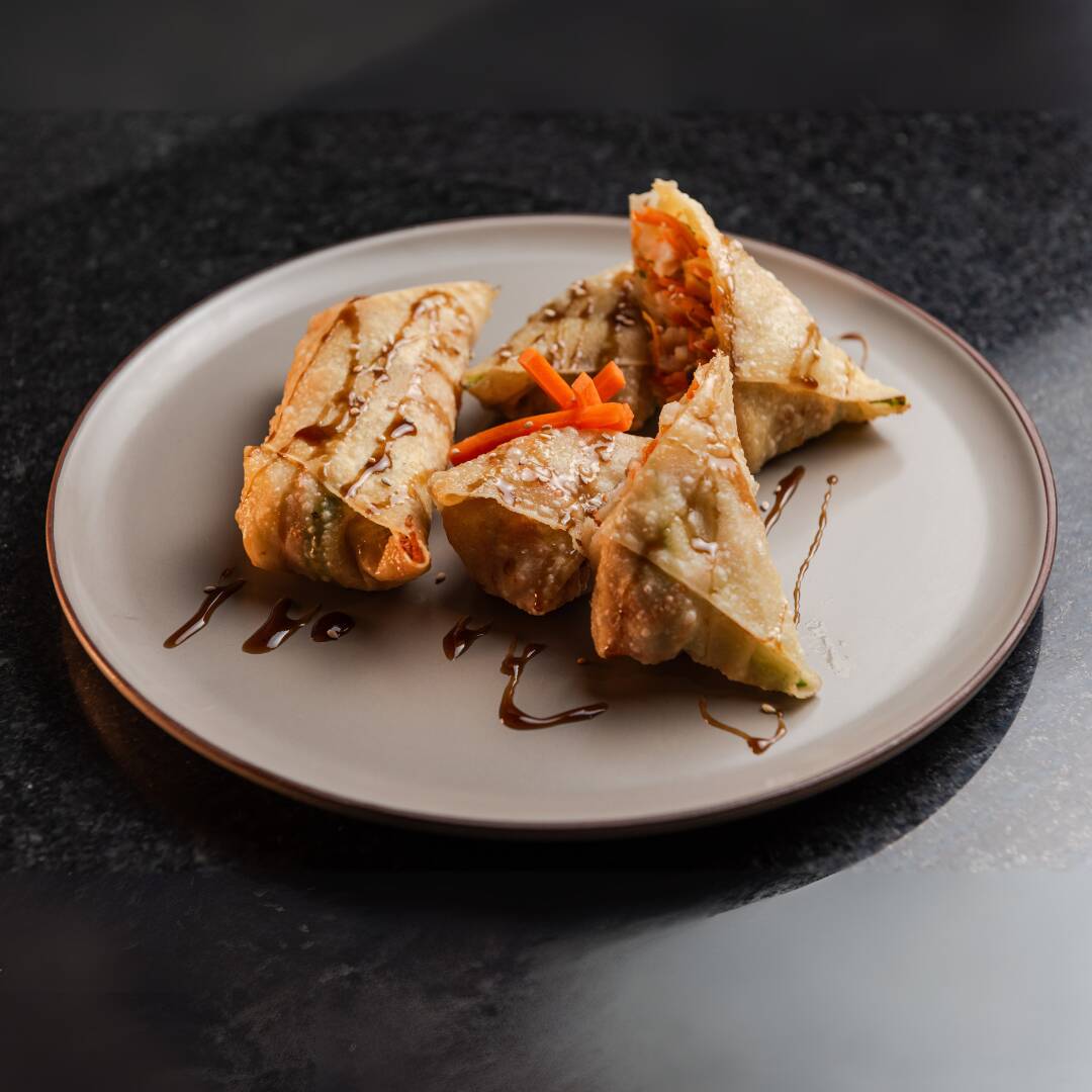 3 piezas, acompañados de salsa pantai. Arrachera o camarón elección.