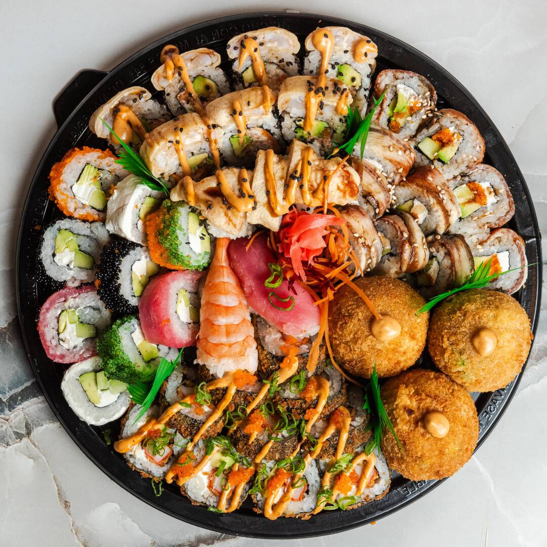 Anaconda roll, scorpion roll, arcoiris roll, unagi maki, nigiris de camarón, nigiris de atún y meshi ball’s.