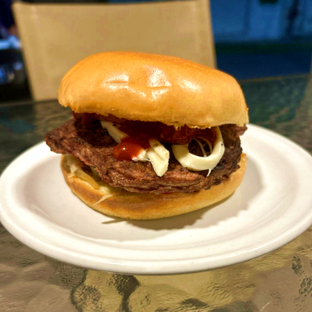 Pan brioche, carne sabor angus asada al carbón, mayonesa, ketchup, mostaza, jitomate, cebolla, queso de hebra, salsa bbq