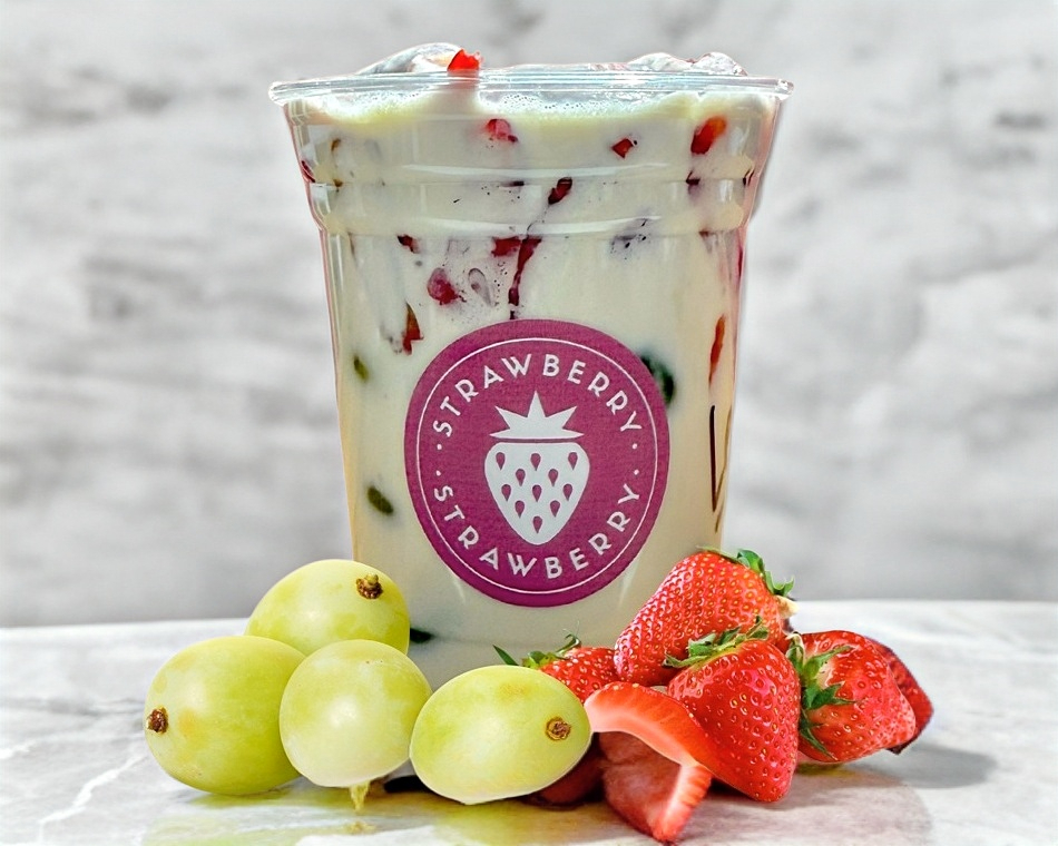 Vaso de fresas con uvas verdes y crema, mediano (473 mil), acompaña con 1 espiral y 2 toppings de tu selección.