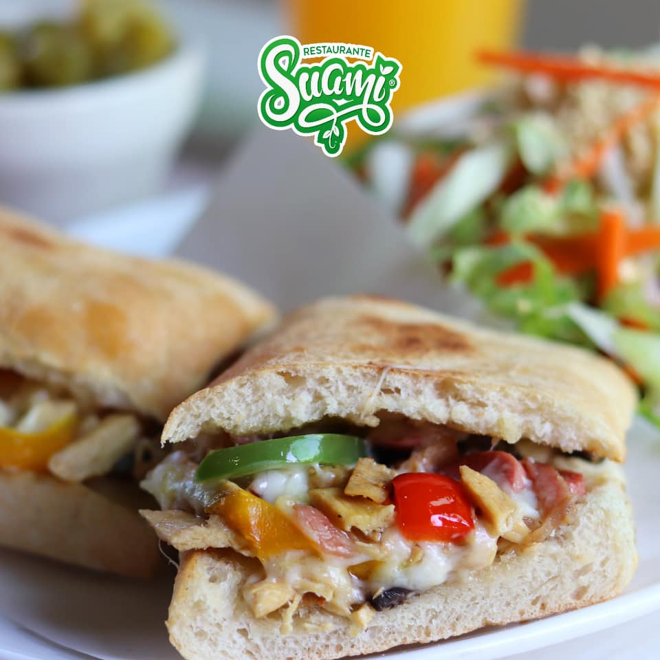 Baguette de 40 cms con pechuga de pollo, mayonesa, lechuga, jitomate, cebolla, queso manchego y aguacate.