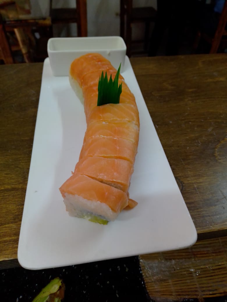 Mango por fuera, salmón fresco, aguacate y Philadelphia por dentro.