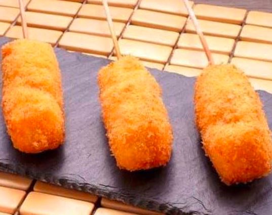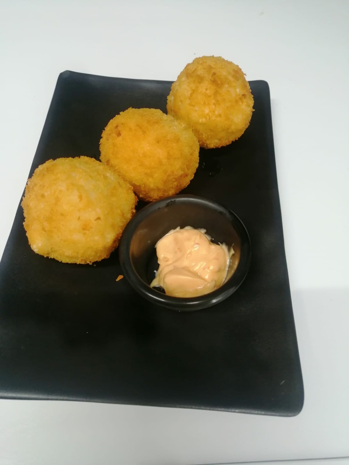 Bolitas de arroz rellenas de queso philadelphia con pollo, arrachera o camarón.