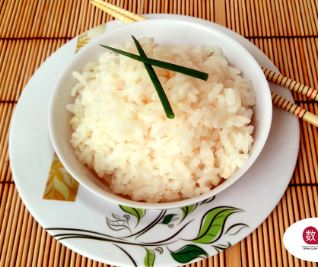 Arroz blanco al vapor solo o con condimento de salmón o camarón.