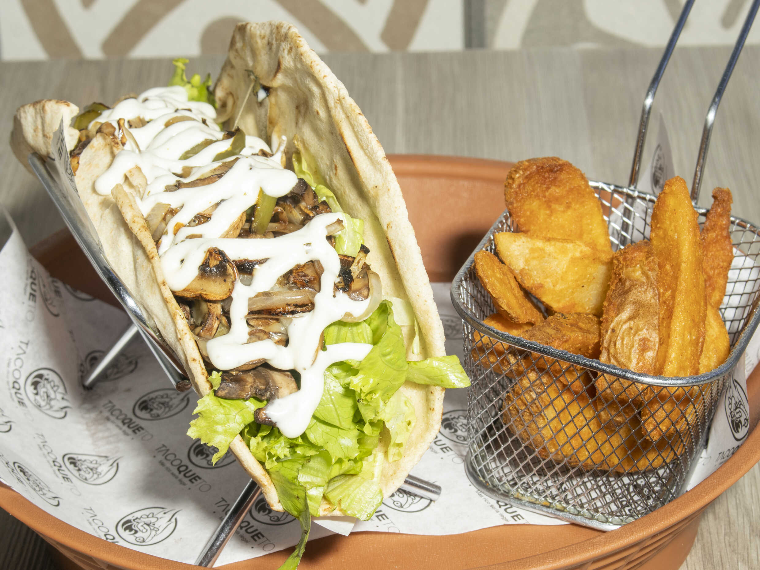 Pan pita, lechuga, pimientos y champiñones
