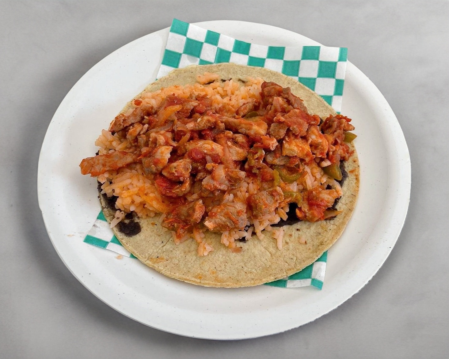 INCLUYE 2 TORTILLAS DE MAIZ, FRIJOLES Y ARROZ
