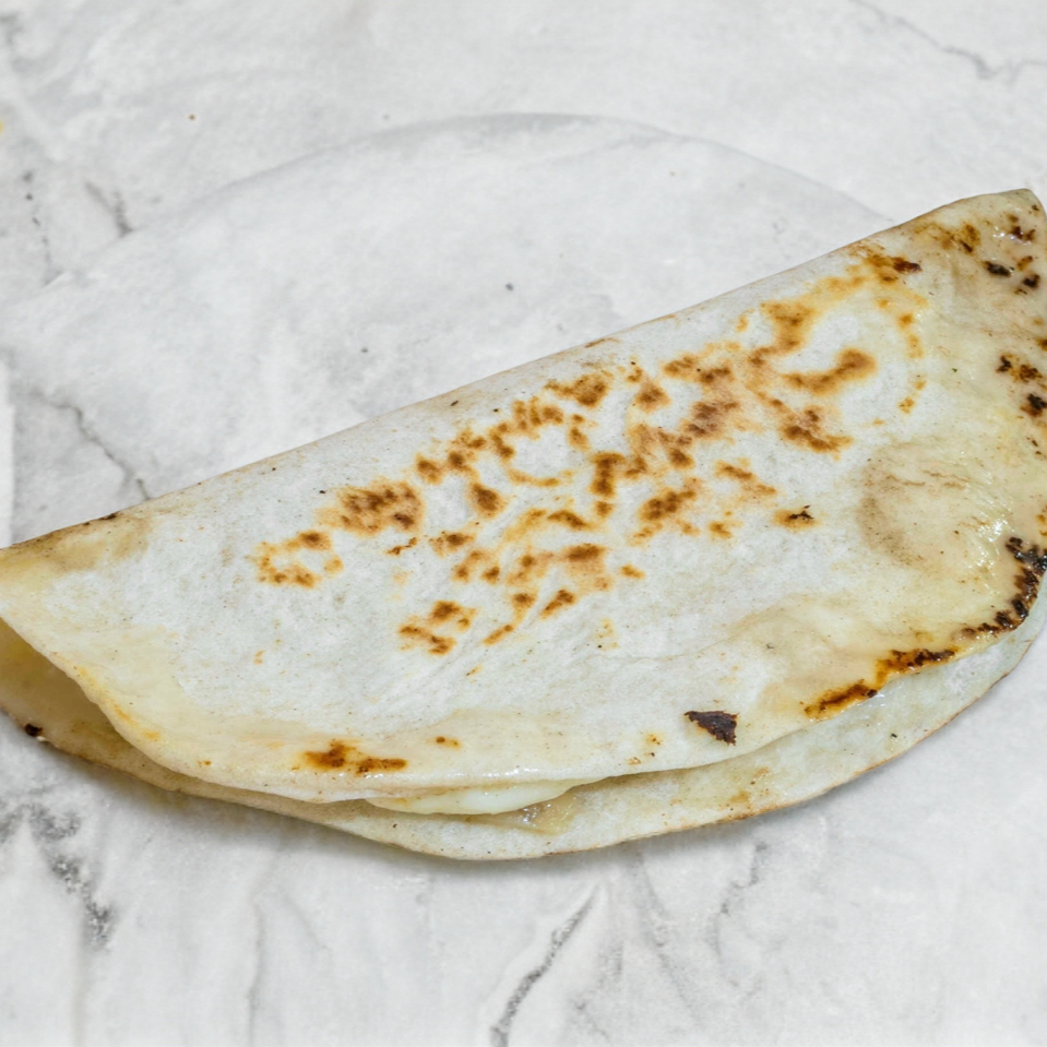 Queso derretido en tortilla de harina
