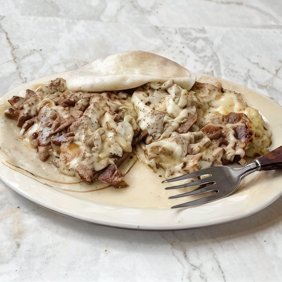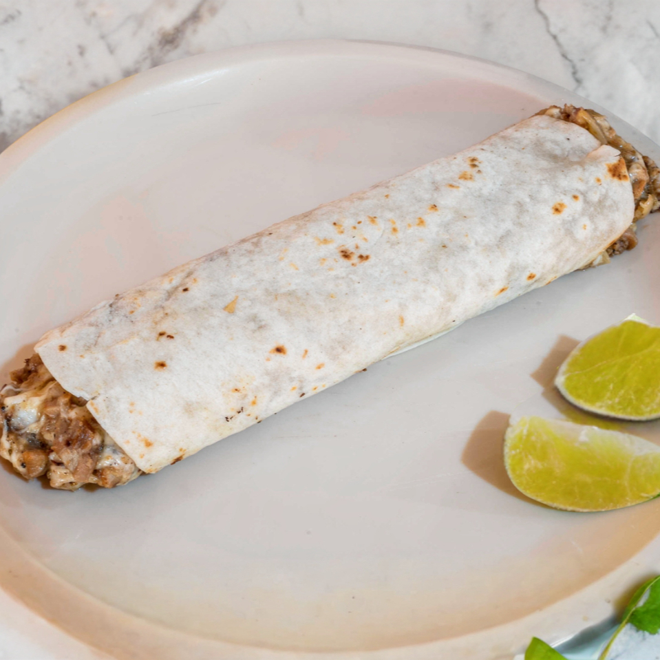 Carne arabe con queso en tortilla de harina