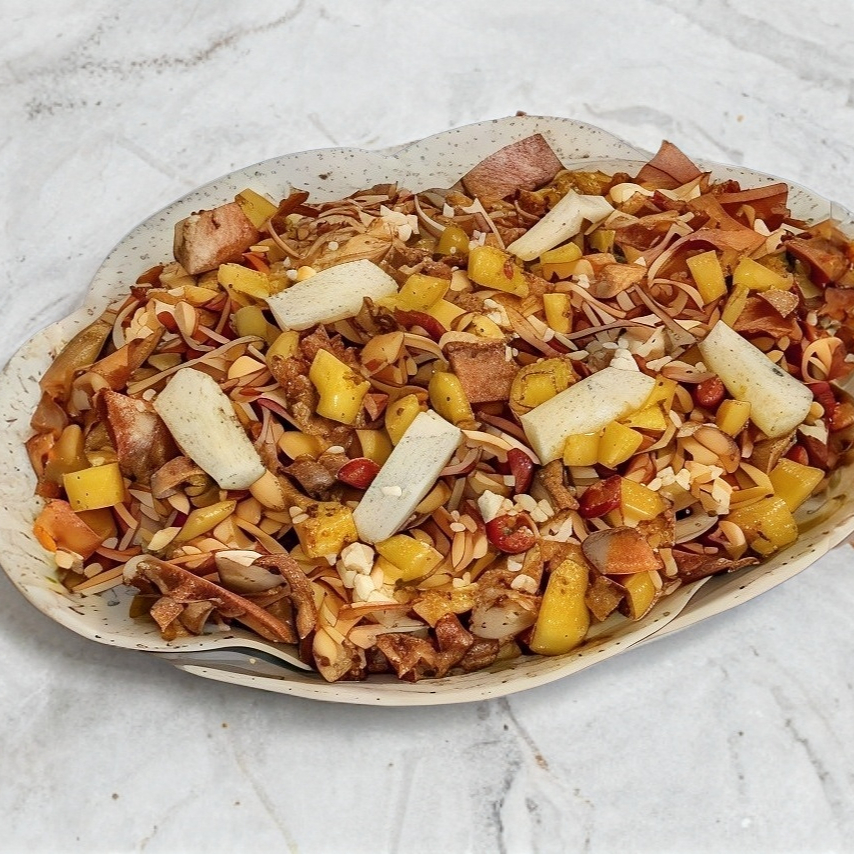 Carne arabe, quesillo, piña, 20 tortillas de maiz y harina, salsas y limones
