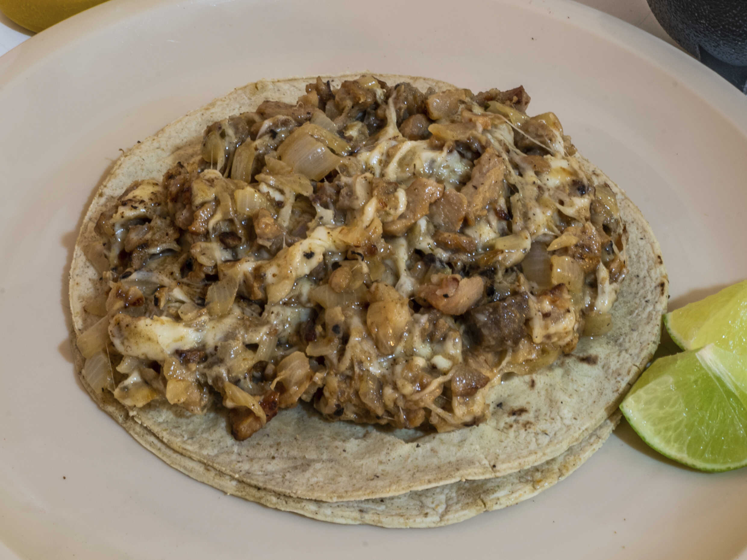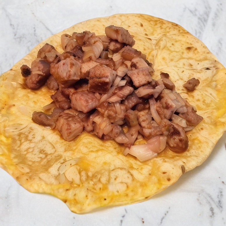 Carne arabe con queso en tortilla de maiz