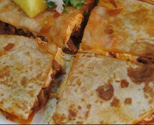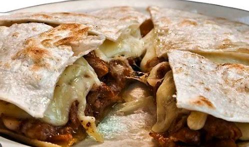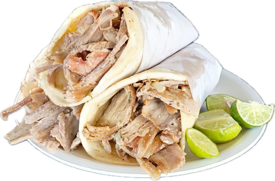 Dos tortilla de harina, queso y carne (Árabe o Pastor 190 gr aprox) "1 sola elecciones " con salsa verde y limones.