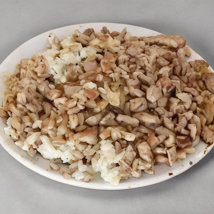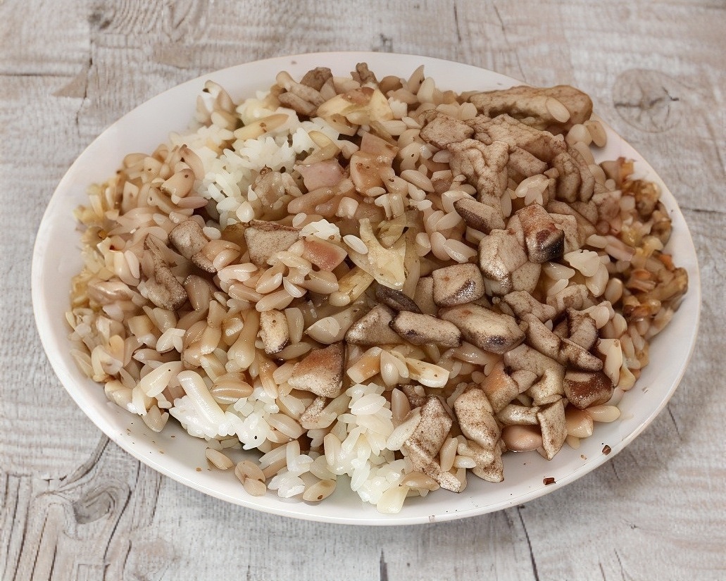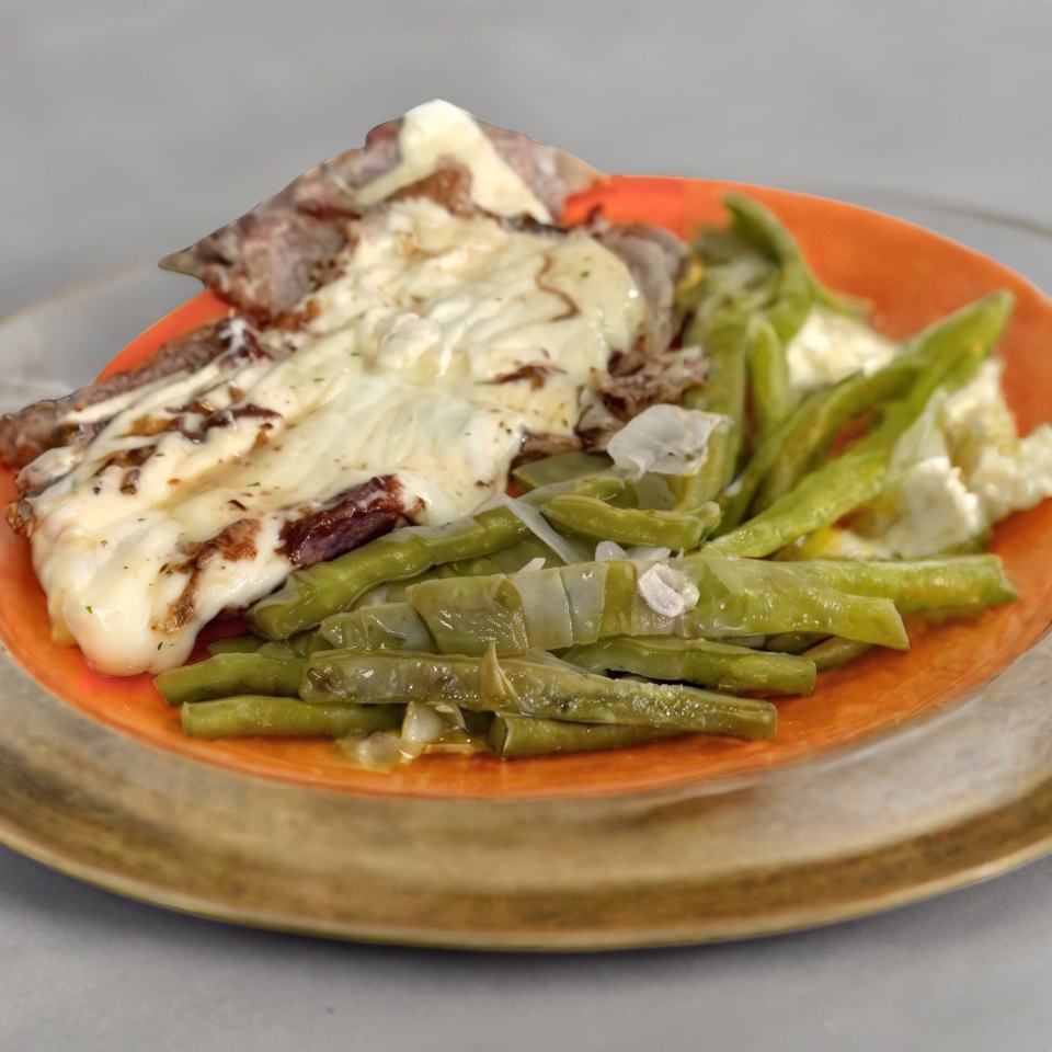 chuleta, tocino, champiñoñes, cebolla, nopales, queso
