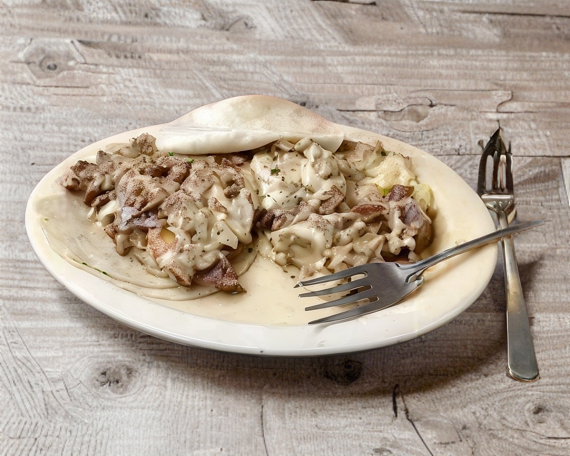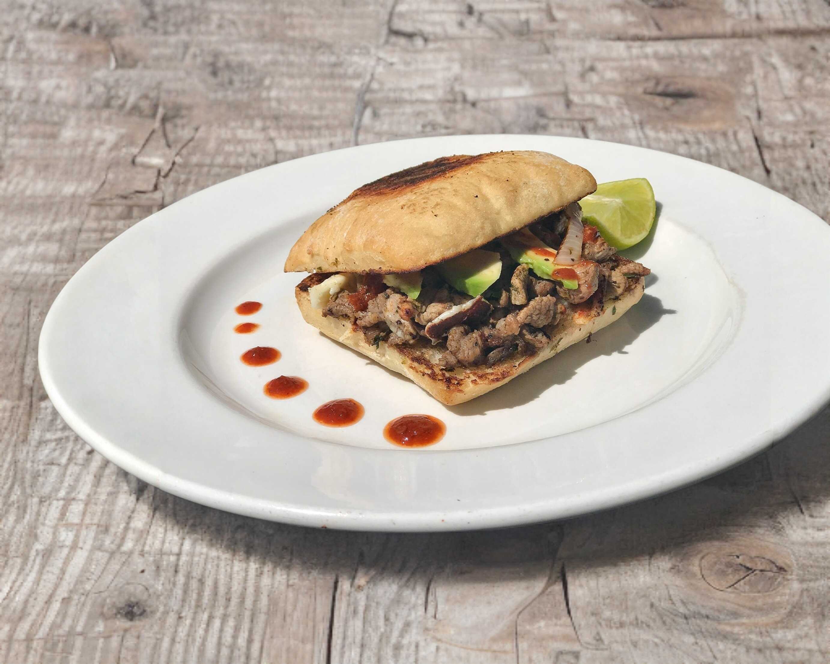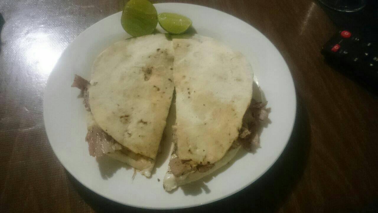 1 Pza Tortilla de harina con queso y carne arabe, salsa arabe y limón.