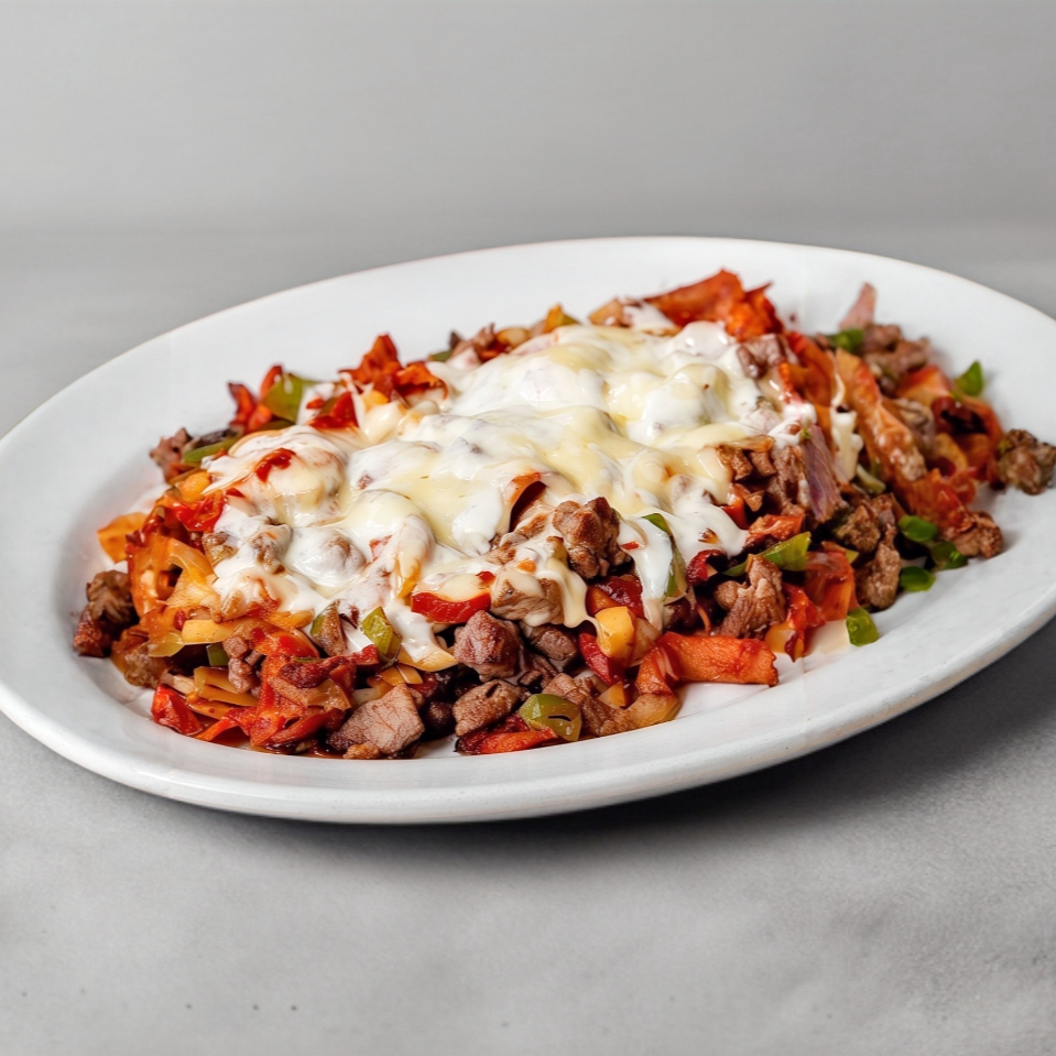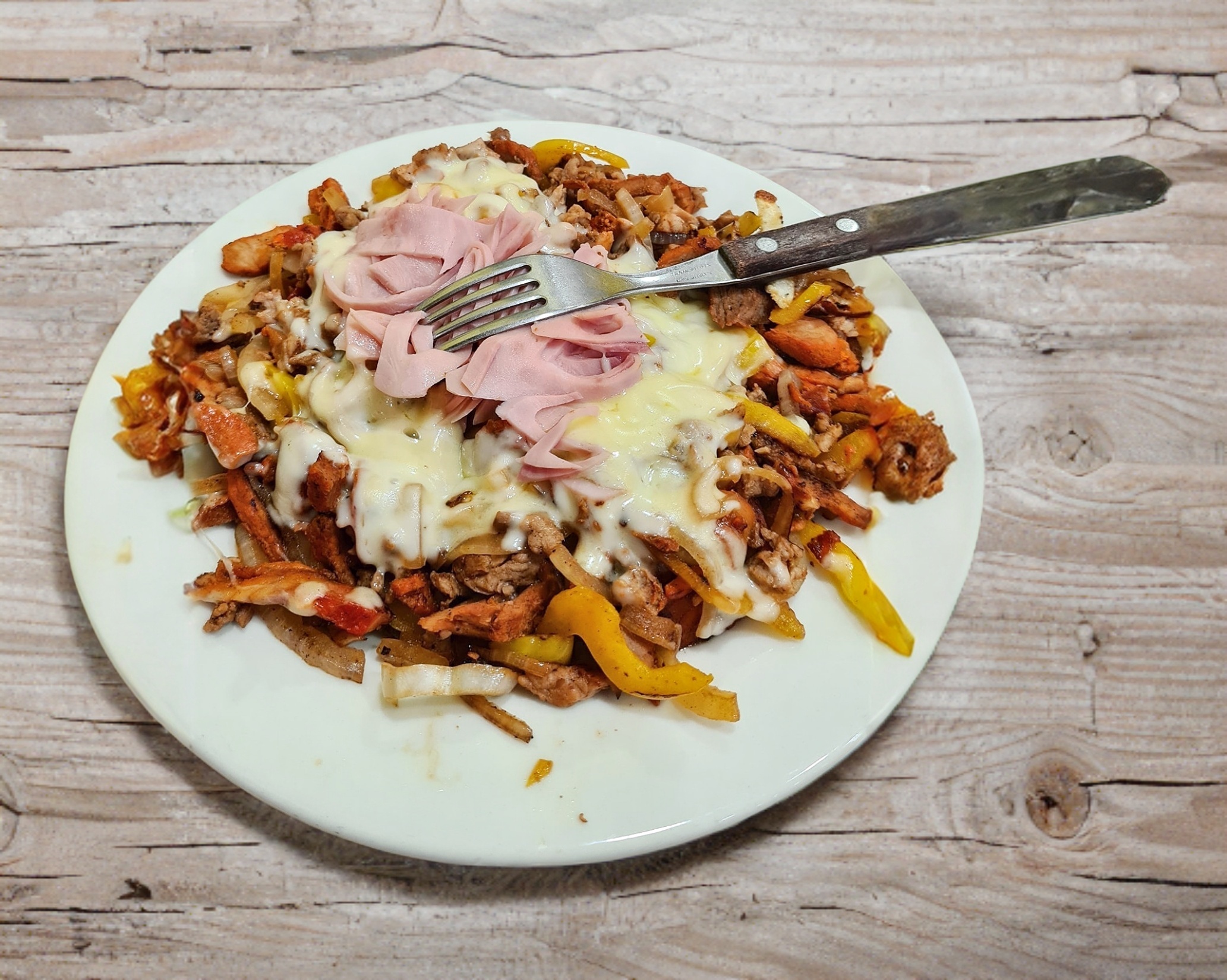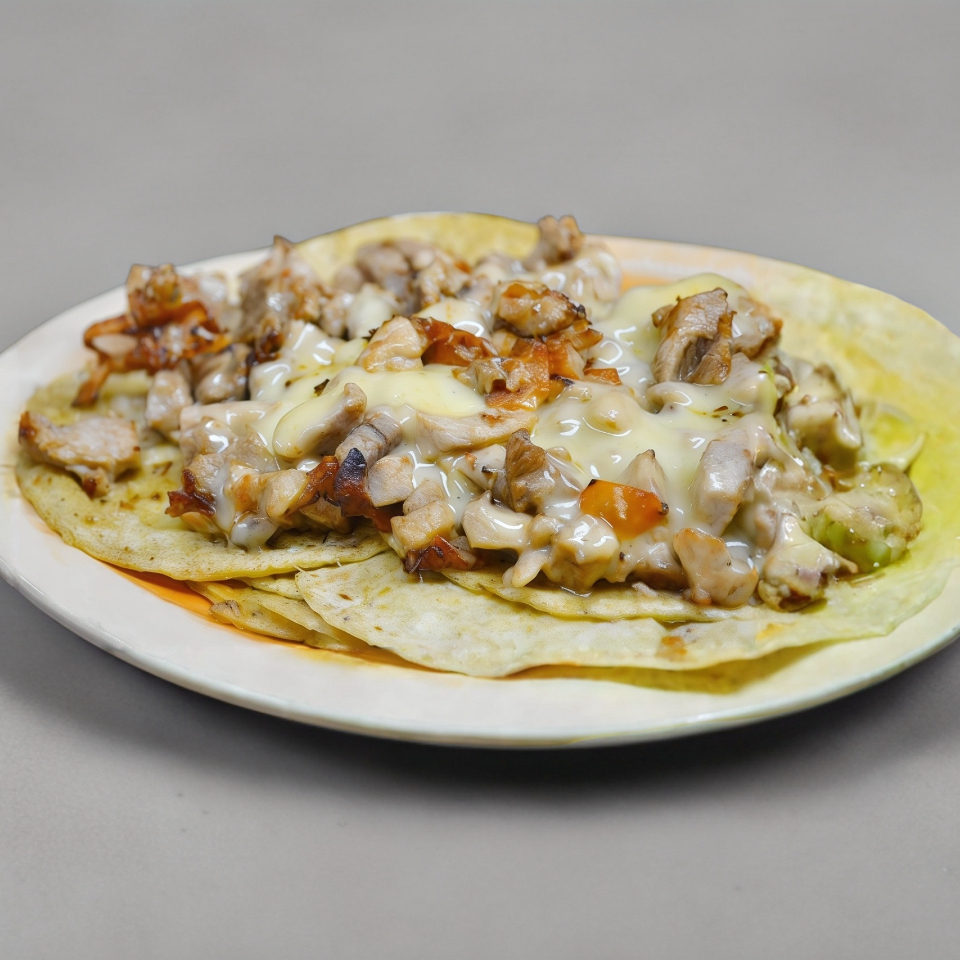 POLLO, TOCINO, PIMIENTO, CEBOLLA, QUESO.