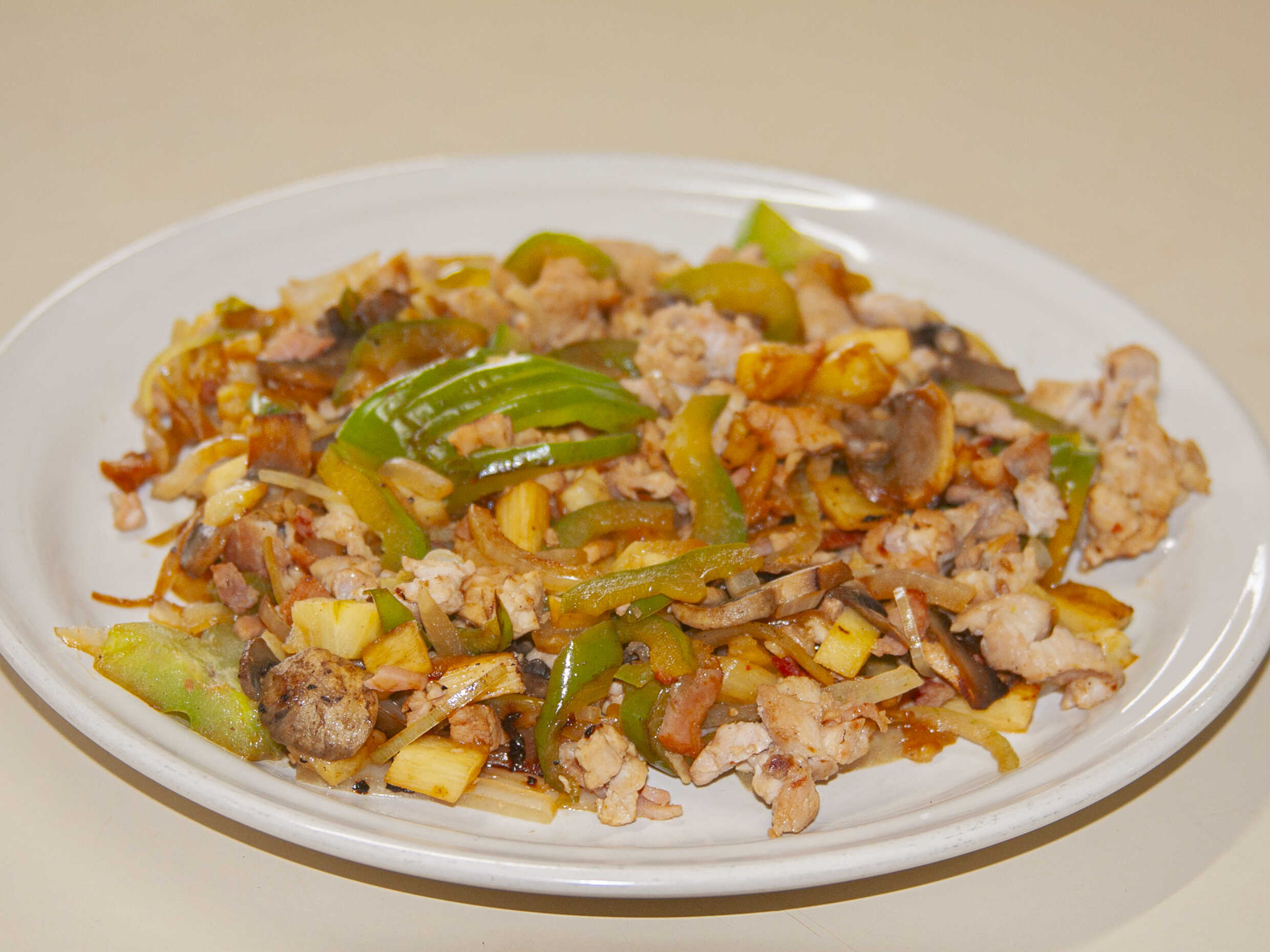 CHULETA, TOCINO, CHAMPIÑOÑES, PIMIENTO, PIÑA, CEBOLLA