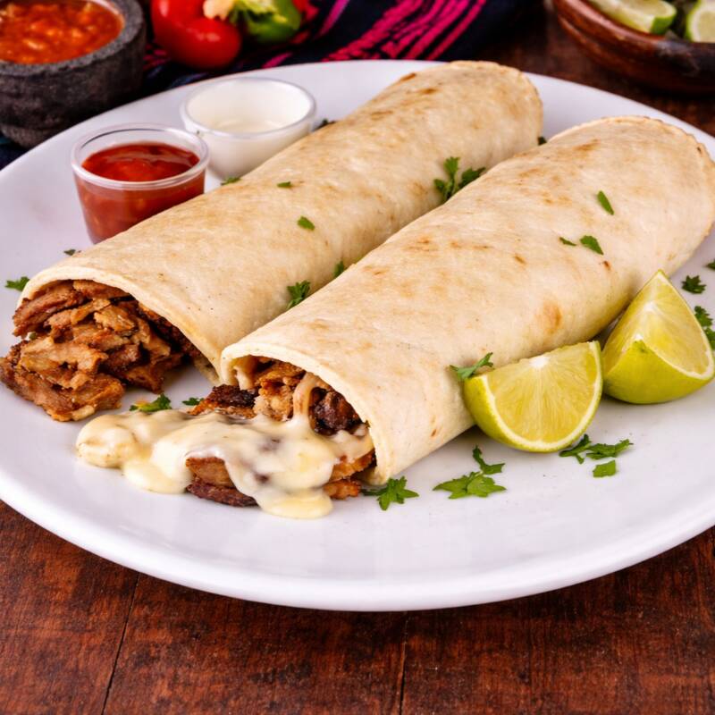 CARNE ÁRABE Y QUESO CON 2 TORTILLAS DE HARINA