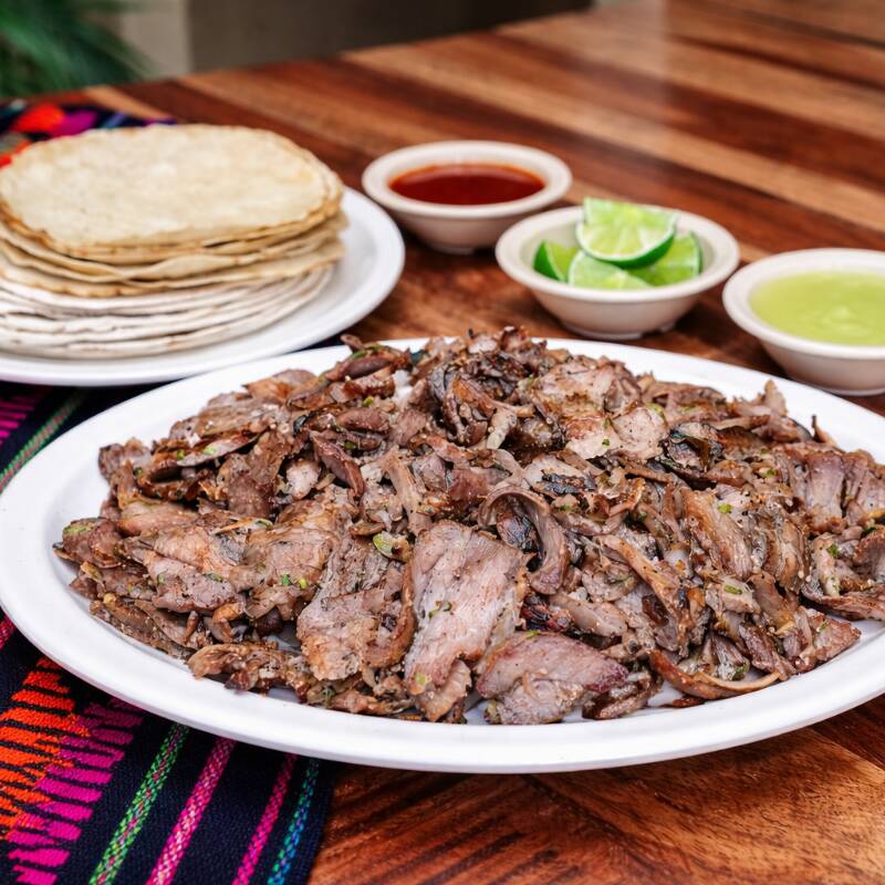 CARNE ÁRABE, TORTILLAS DE HARINA SALSAS Y LIMONES