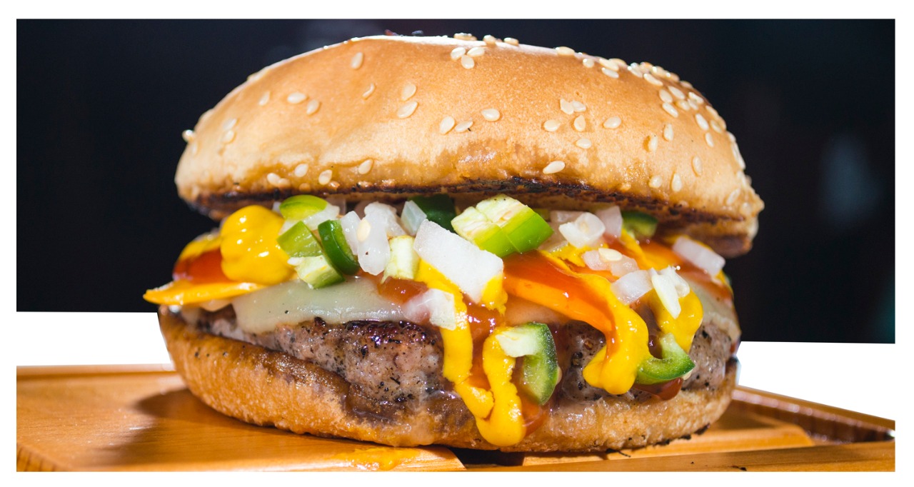carne de res a la plancha, jamon, queso americano, queso oaxaca, tocino, lechuga, jitomate, cebolla morada, jalapeño y papas fritas