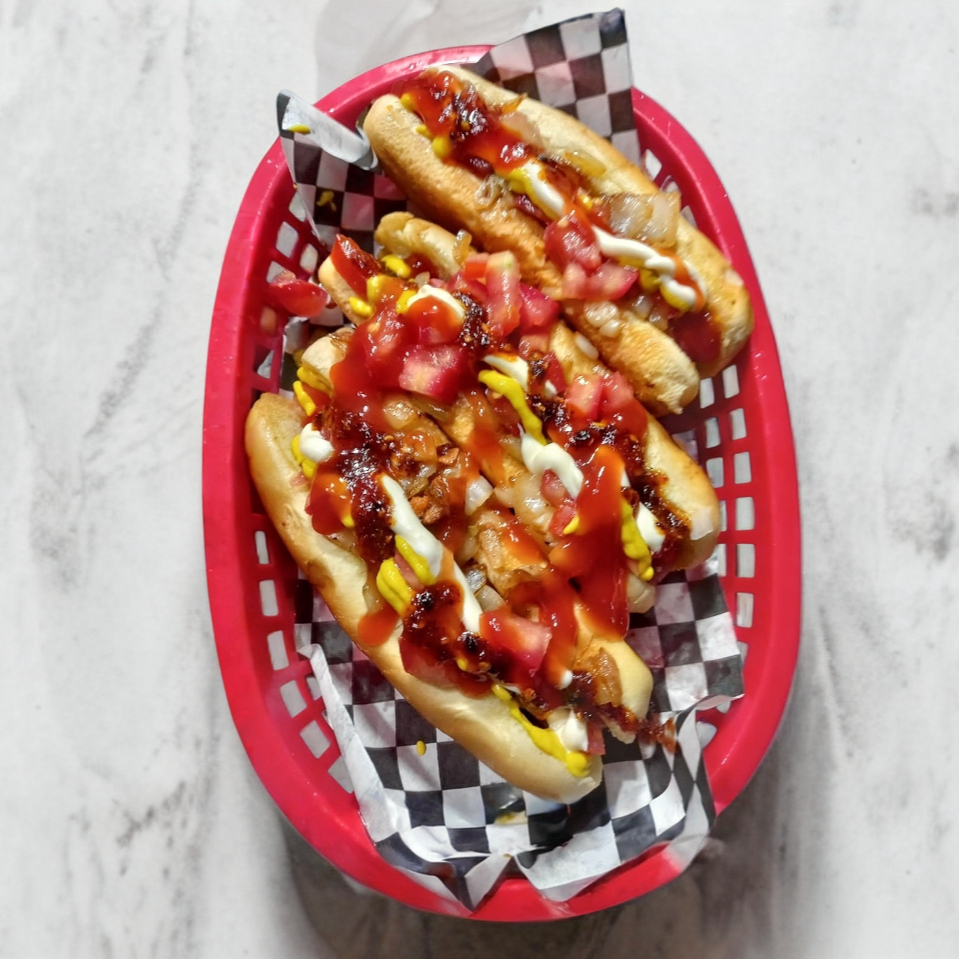 4 Alitas BBQ + 1 hamburguesa hawaiana y 200 Gramos de papas francesa.