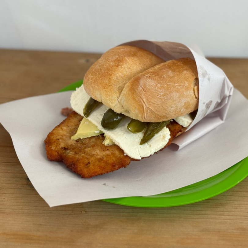 DELICIOSA TORTA ARTESANAL DE AGUA CON UNA CAMA DE FRIJOLES CON UNA RIQUÍSIMA MILANESA DE CERDO CON QUESO BLANCO, AGUACATE Y EL PICANTE DE TU PREFERENCIA