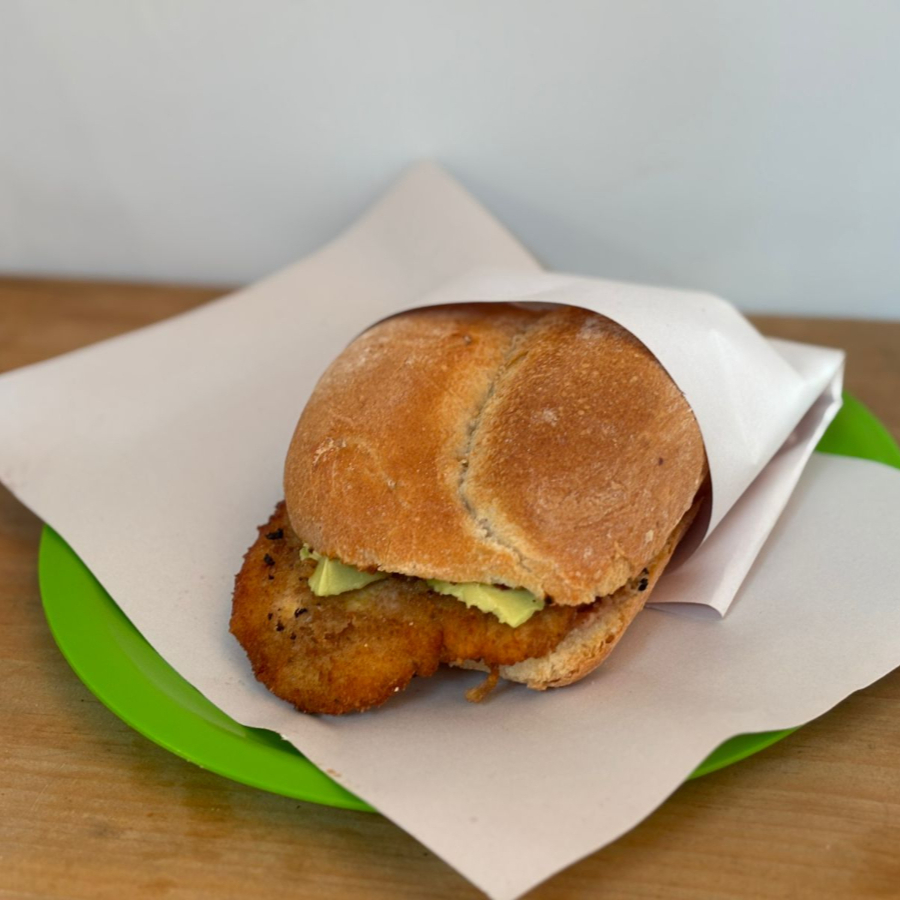 DELICIOSA TORTA ARTESANAL DE AGUA CON UNA CAMA DE FRIJOLES CON UNA RIQUÍSIMA MILANESA DE POLLO CON AGUACATE Y EL PICANTE DE TU PREFERENCIA