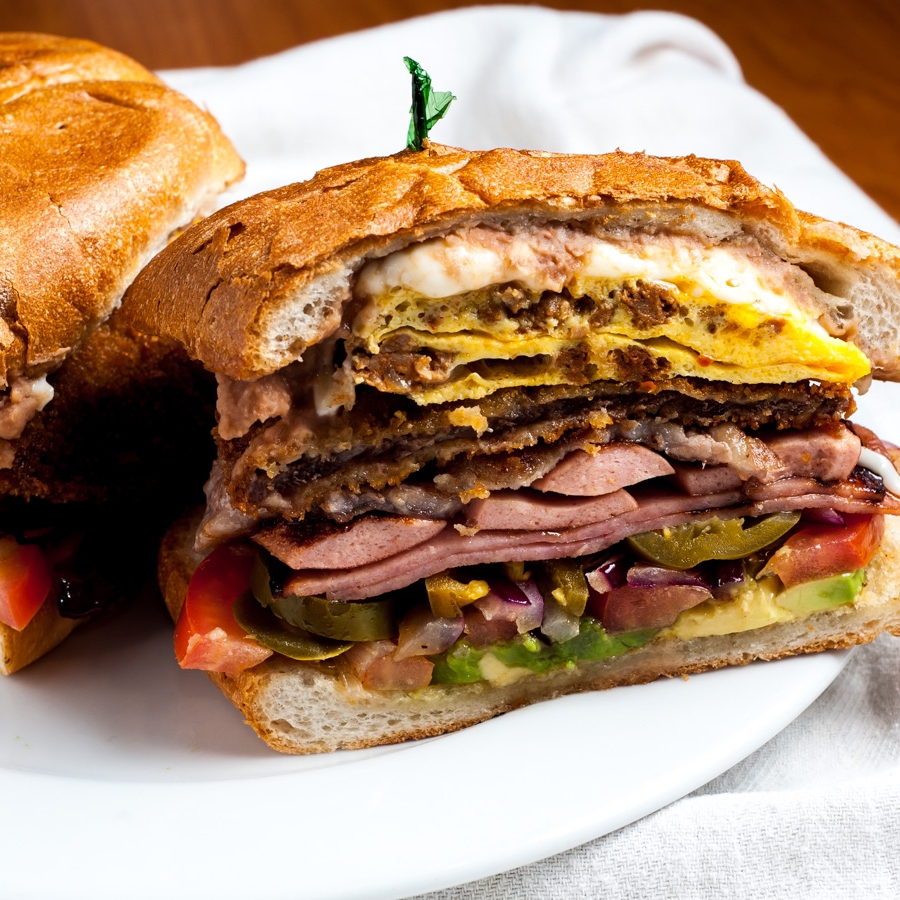 torta con jamon queso,mayonesa,lechuga,jitomate,chiles,aguacate