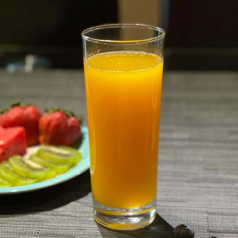14 oz. De Jugo de naranja 100% natural recién exprimido,