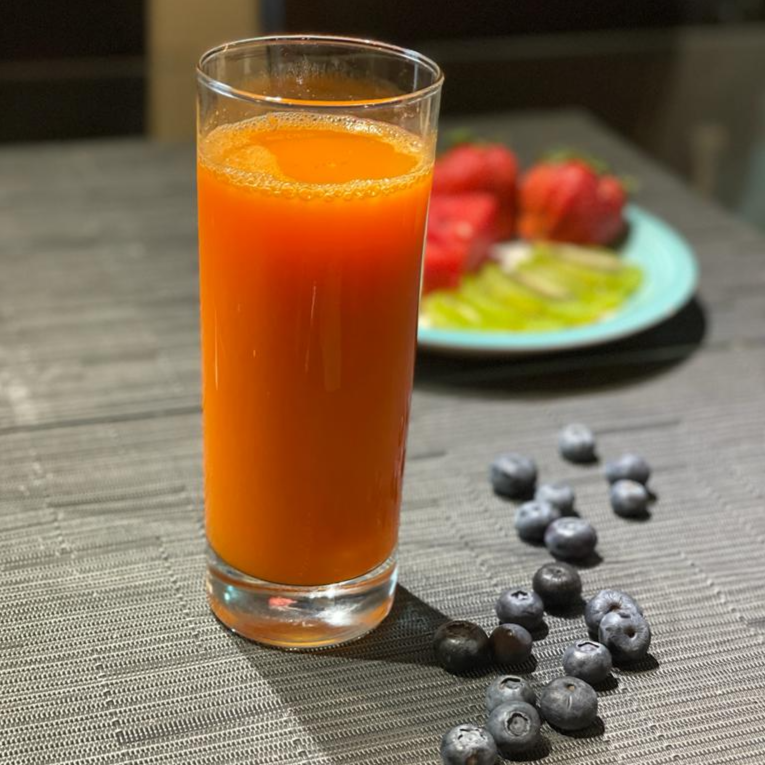 14 oz. De Jugo de zanahoria y naranja 100% natural recién exprimido