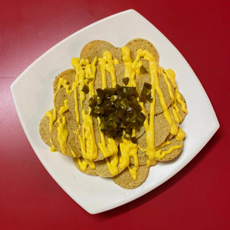 100 Gramos de Tostitos con queso amarillo y jalapeños picados.