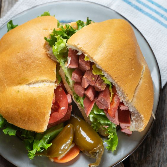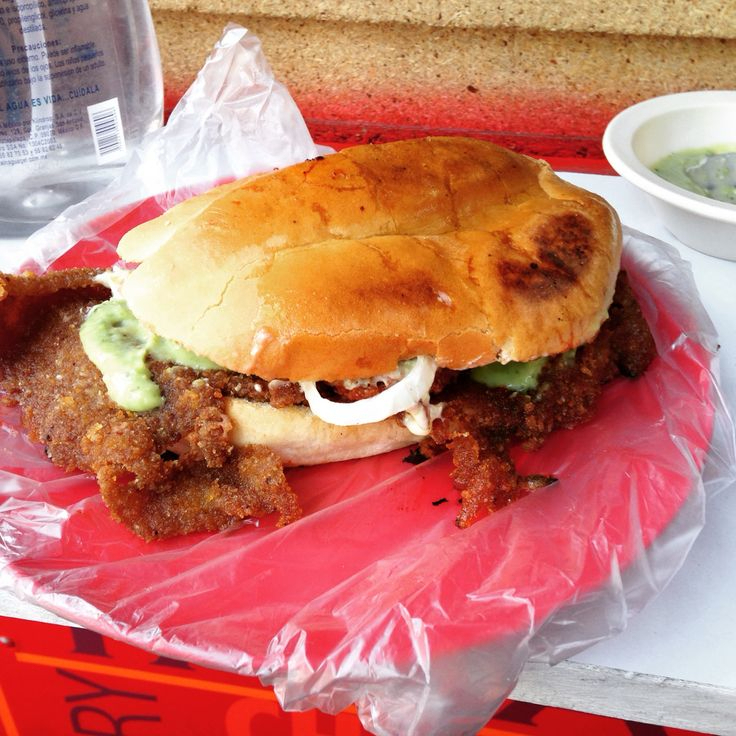 Milanesa de cerdo o pollo , aguacate, jitomate, cebolla, queso Oaxaca, queso amarillo, chiles en vinagre, pierna española, salchicha,