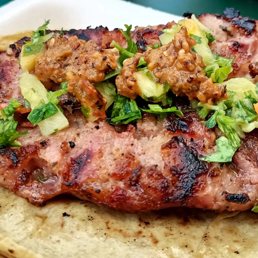 Medallón de rez ,jamón, queso amarillo,queso Oaxaca, Chile en vinagre, cebolla, cebolla, jitomate, catsup, mostaza,